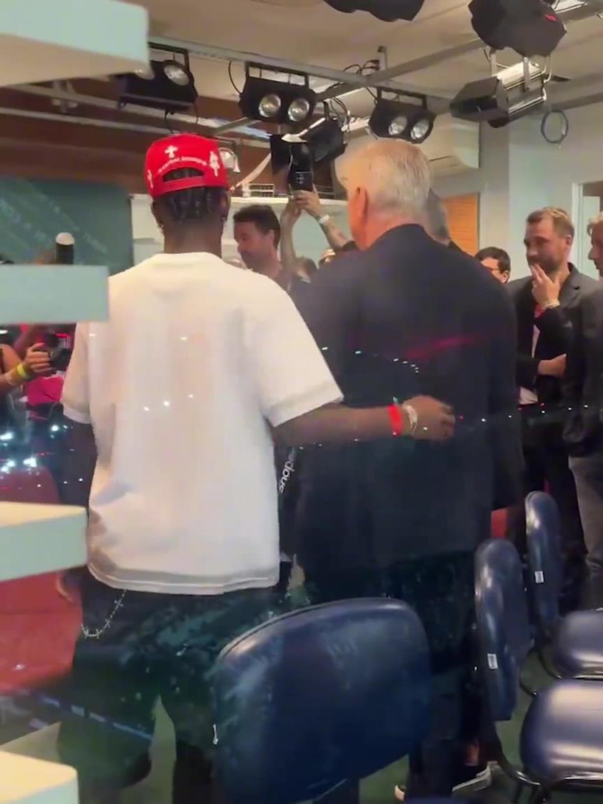 • 又見面了維尼修斯回到巴西與正在考察球員的安切洛蒂談笑風生